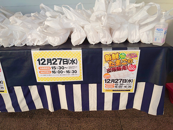 取材当日は 駐車場で新鮮な卵の出張販売が行われており、大勢のプレイヤーが列を作っていた。