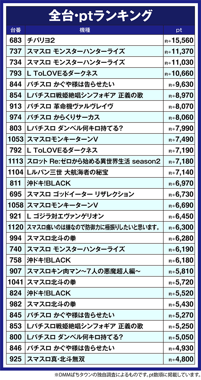 ※なお、本記事中のデータは全てDMMぱちタウンの独自調査によるものです