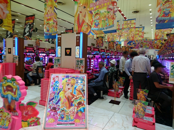 4円パチンコでは、何といっても2つシマがある80台「CRスーパー海物語IN沖縄4」が大盛況で、物凄い勢いを感じることが出来た。