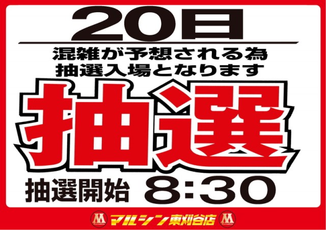 本日20日は抽選時間8:30💥ご来店お待ちしております🌈🎥
