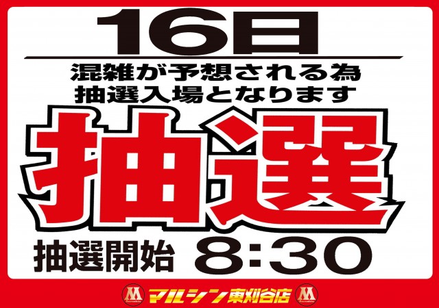 本日16日は抽選入場!抽選時間8:30ご来店待ってます🌳🌈