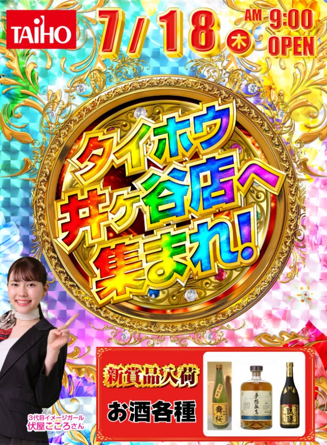 15日(土)タイホウグループ全店あさ9時オープン新賞品入荷♬