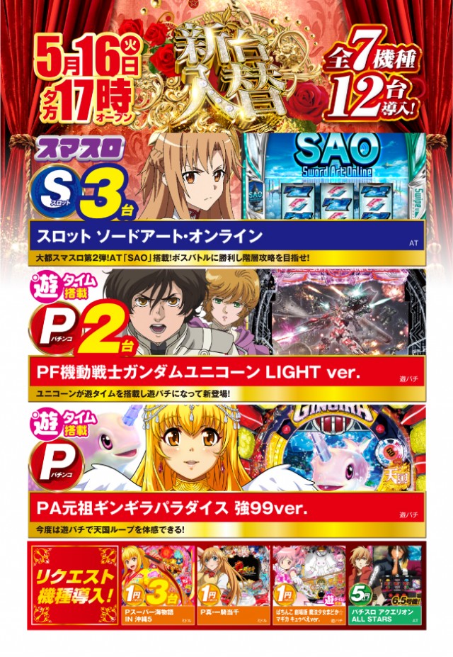 6月6日(火)新台入替あさ9時オープン♪