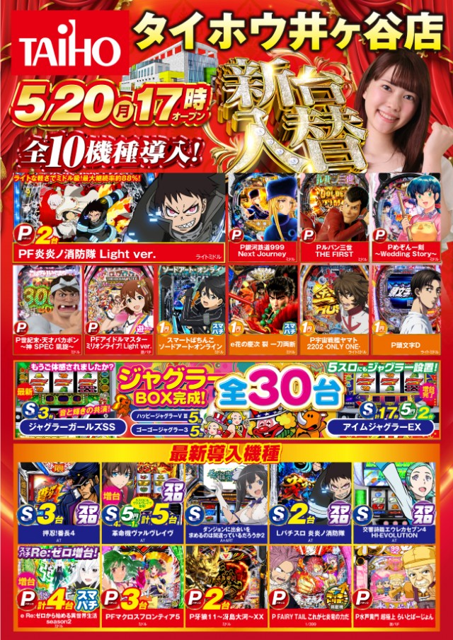 20日タイホウグループ全店あさ9時オープン 新賞品入荷♬