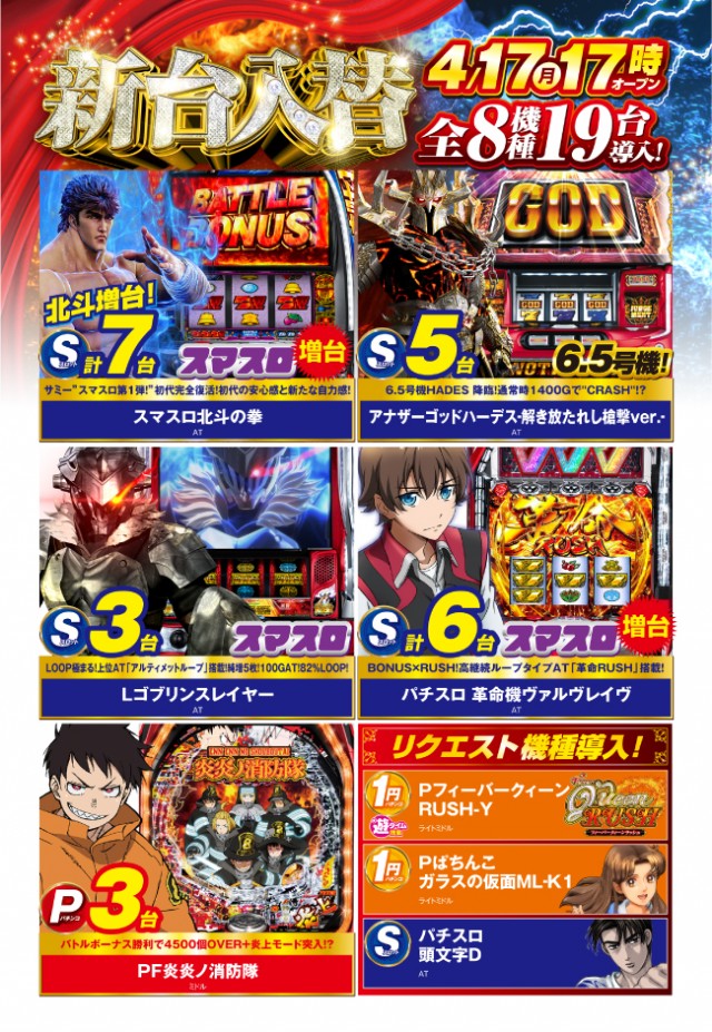 16日(火)新台入替17時オープン(予定)