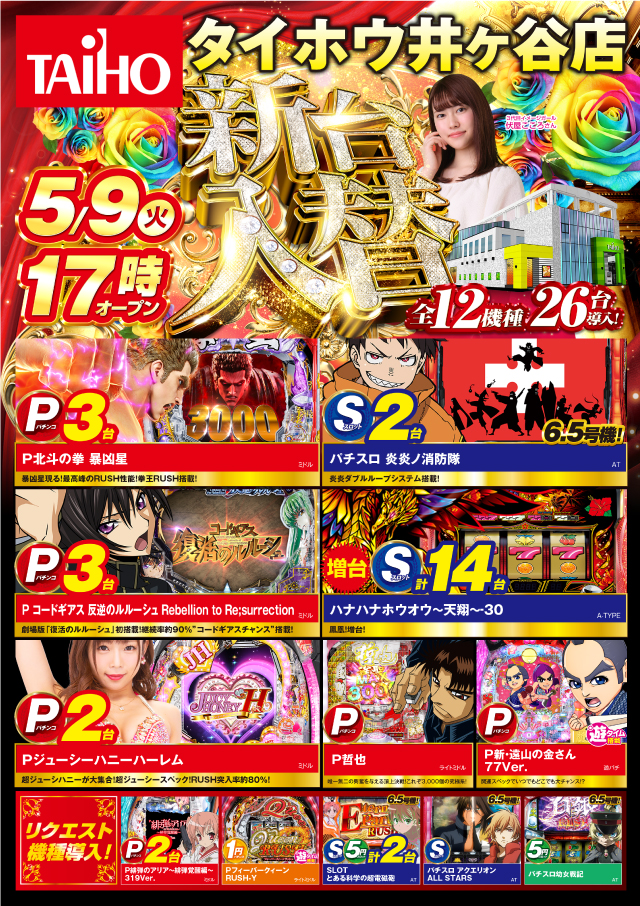 5月9日(火) 新台入替17時オープン(予定)