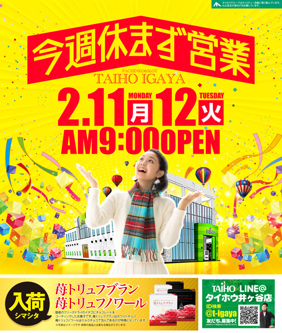 新賞品のご案内!苺トリュフブラン 苺トリュフノワールをご用意しております。AM9:00 OPEN!今週休まず営業!!皆様のお越しをお待ちしております只今LINE@友達募集中♪新台情報などお店からの最新情報はもちろん設置機種すべてのリアルタイム情報もGETできちゃいます♪友達追加は下記↓をクリック
