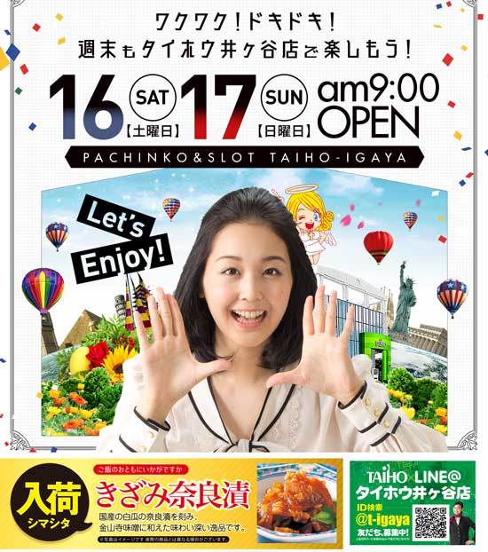 新賞品のご案内!きざみ奈良漬けをご用意しております。AM9:00 OPEN!今週休まず営業!!皆様のお越しをお待ちしております只今LINE@友達募集中♪新台情報などお店からの最新情報はもちろん設置機種すべてのリアルタイム情報もGETできちゃいます♪友達追加は下記↓をクリック -