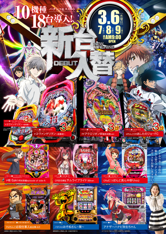 おはようございます。タイホウ井ヶ谷店です。本日3月20日(水)新 台 入 替開 催!
