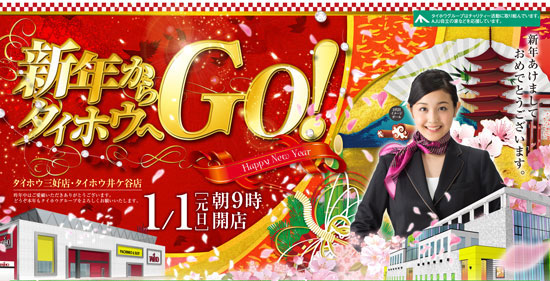 新年あけましておめでとうございます。AM9:00 OPEN!年始も休まず営業!皆様のお越しをお待ちしております -