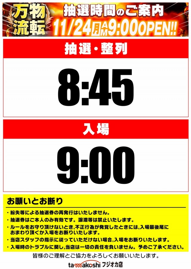 11月24日(月)💥玉越フジオカ店 朝9:00開店❗