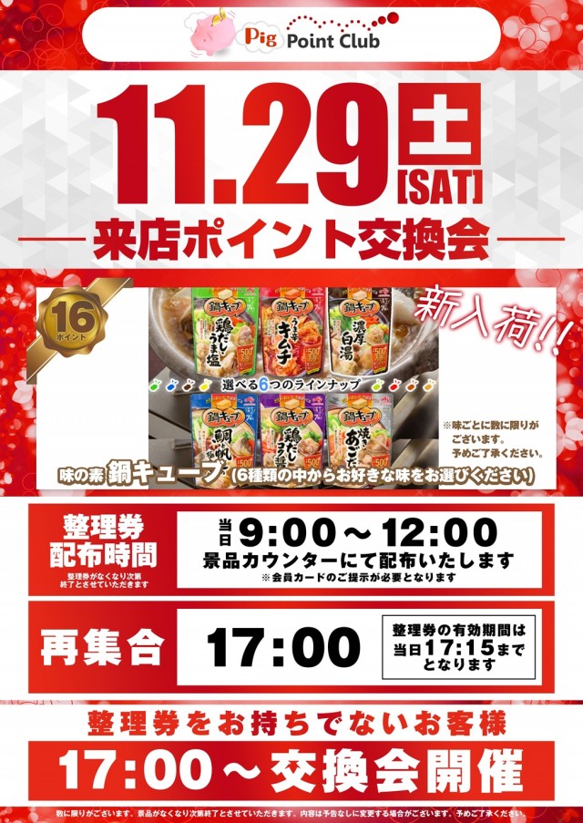 11月29日(土)🎯おすすめ🎯&🎁ポイント交換会🎁