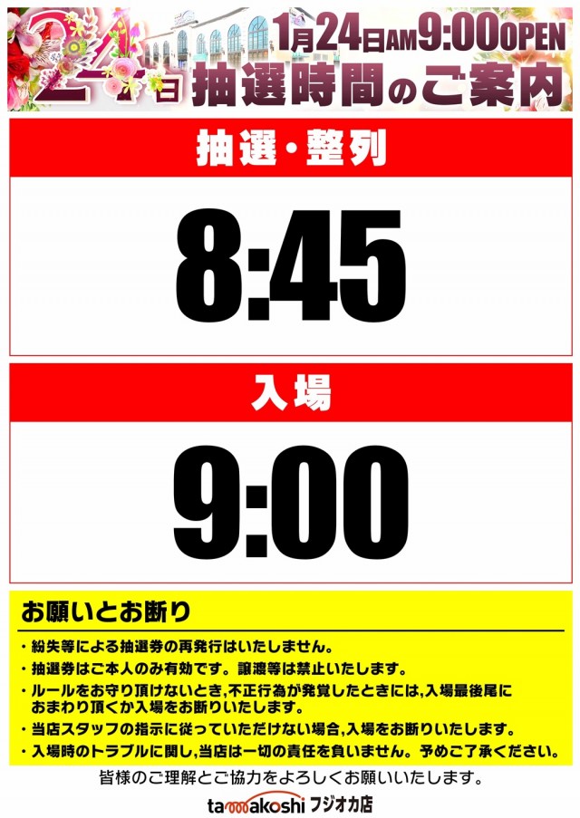 1月24日(土)💥玉越フジオカ店💥 朝9:00開店❗