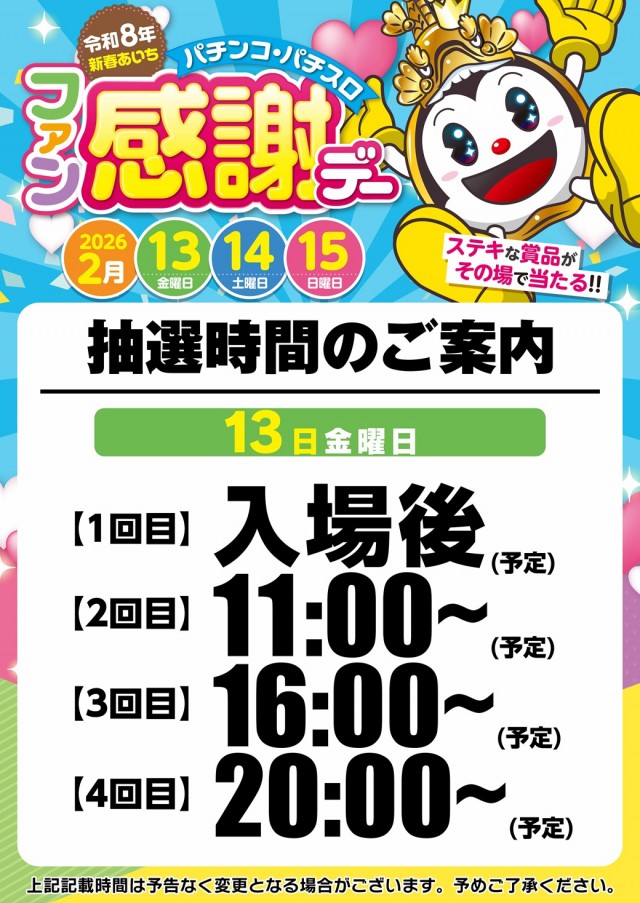 📅2月13日(金)💕🎉新春あいちファン感謝デー🎉💕