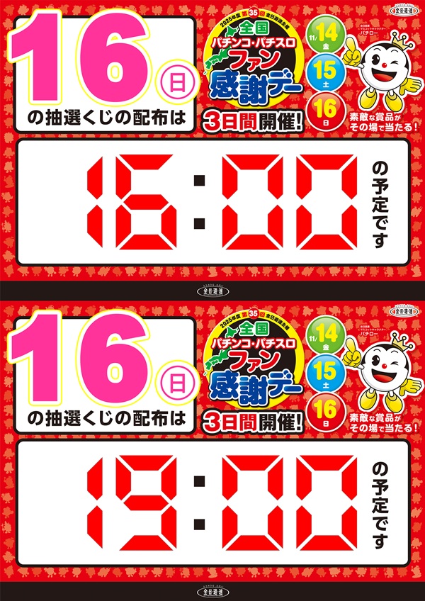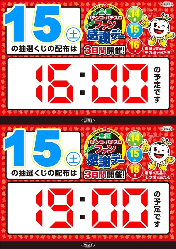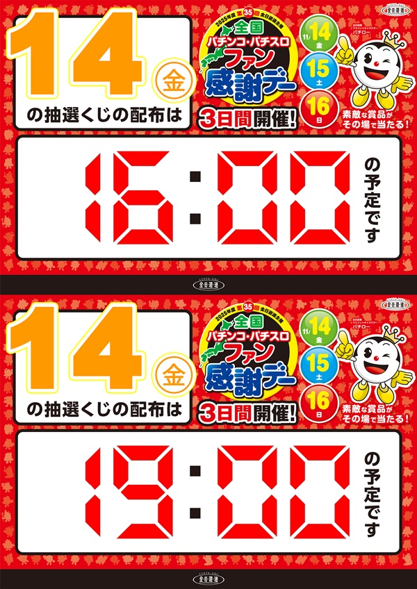 11月15日 ファン感謝デー2日目!ジャグラー景品入荷予定!