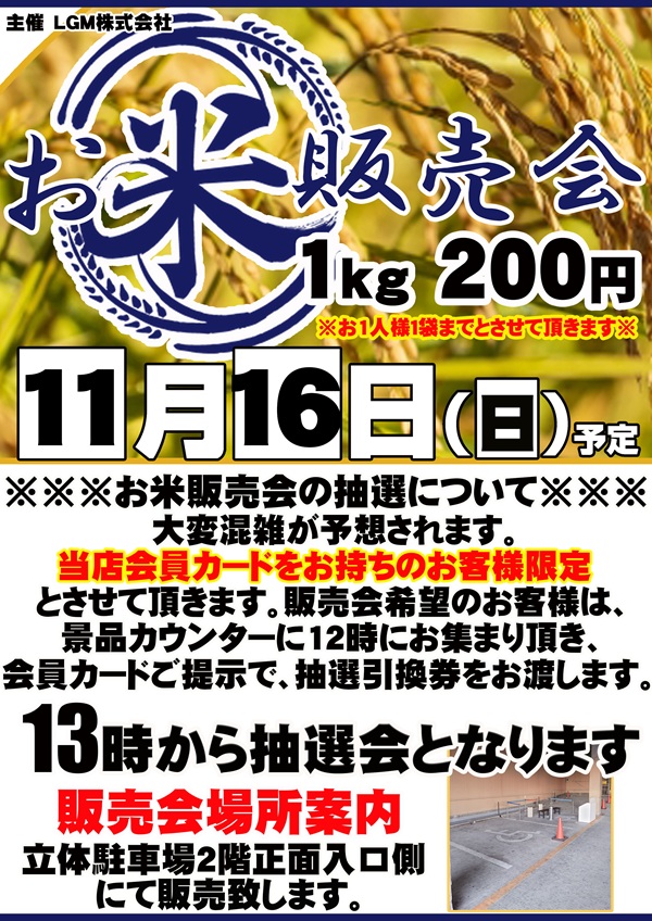 11月16日 ファン感謝デー最終日!お米販売会予定!