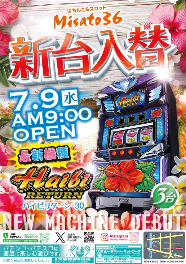 ☆本日、スロット新台導入❗😀今日も36で遊びましょうー❗
