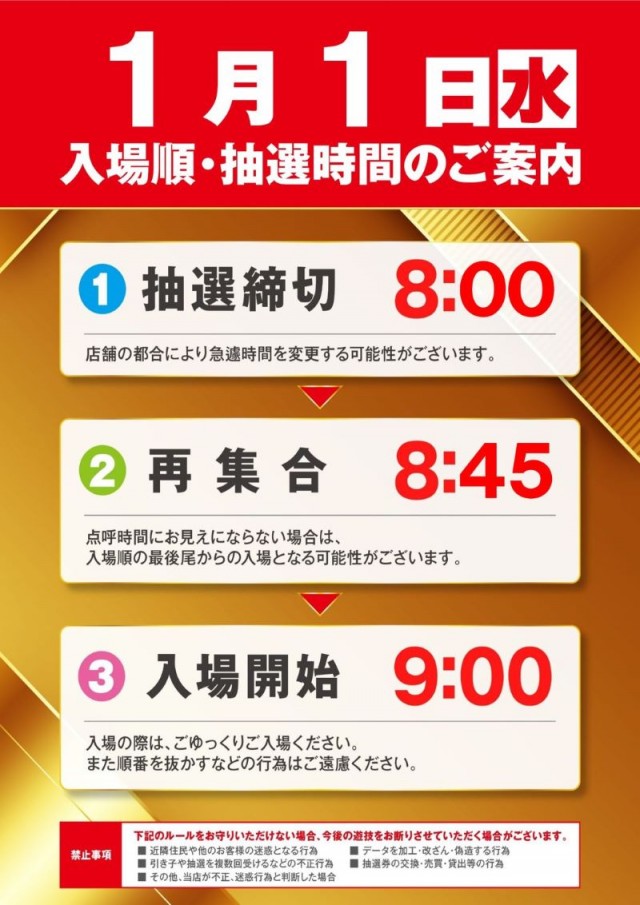 【ZENT梅坪店】2018年1月1日(月)朝9時遊技開始