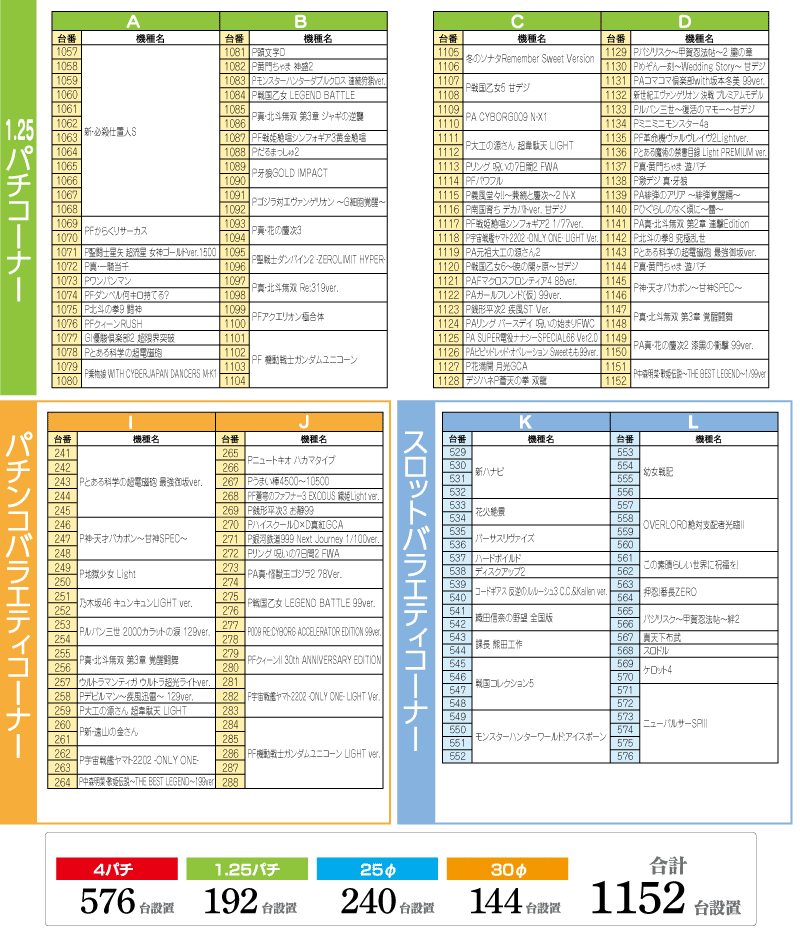 4パチ:1玉4円 1パチ:1玉1円 20スロ:46枚1000円 |