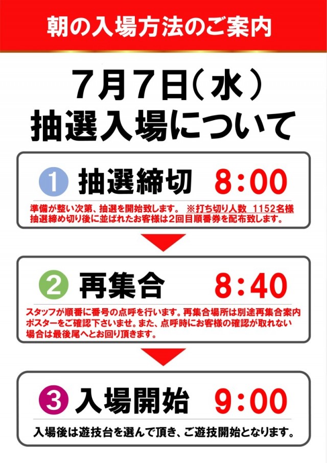 明日7月7日(水)★新台入替★あさ9時OPEN!