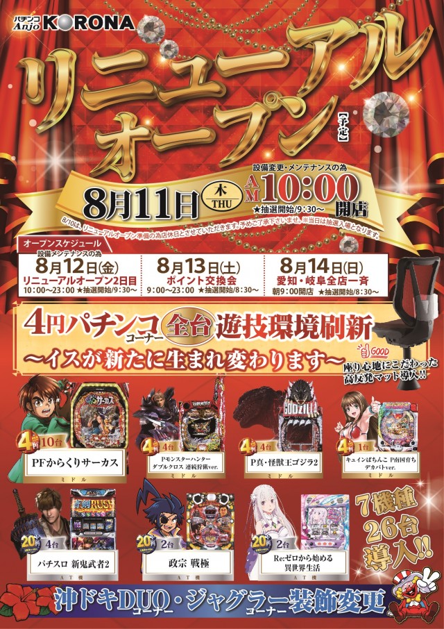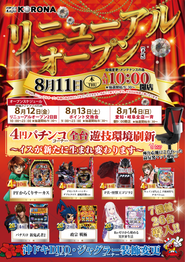 本日8月11日(木)リニューアルオープン朝10時開店!!