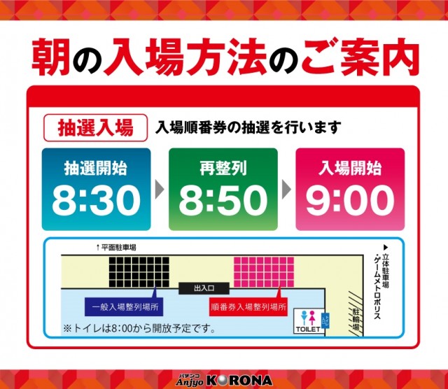 本日25日(土)愛知県パチンココロナ全店一斉9時OPEN!