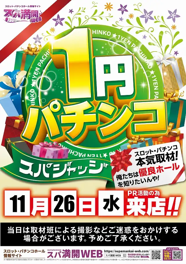 11月26日(水)朝9時開店クロロS&1円スパジャッジ来店!