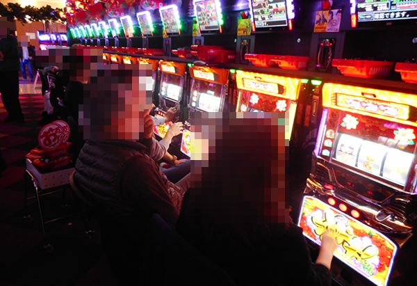 午後の20円パチスロをみると、「バジリスク~甲賀忍法帖~絆」と沖スロに機種の性能を最大限まで引き出しているといった姿を目撃。朝イチから同じ台を打っているプレイヤーもみられた。
