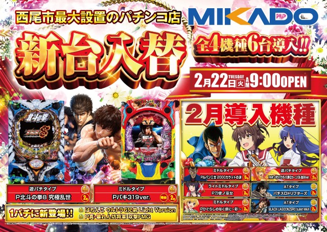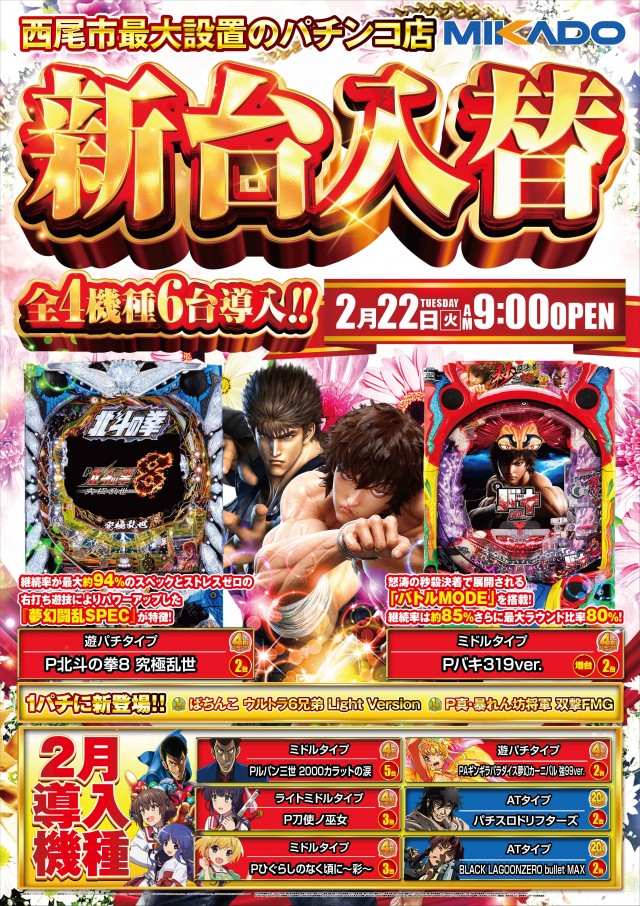 明日2月22日(火)新台入替初日&抽選入場!!朝9時開店💣