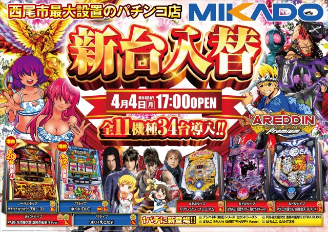 4月4日(月)新台入替&17時開店💣💣