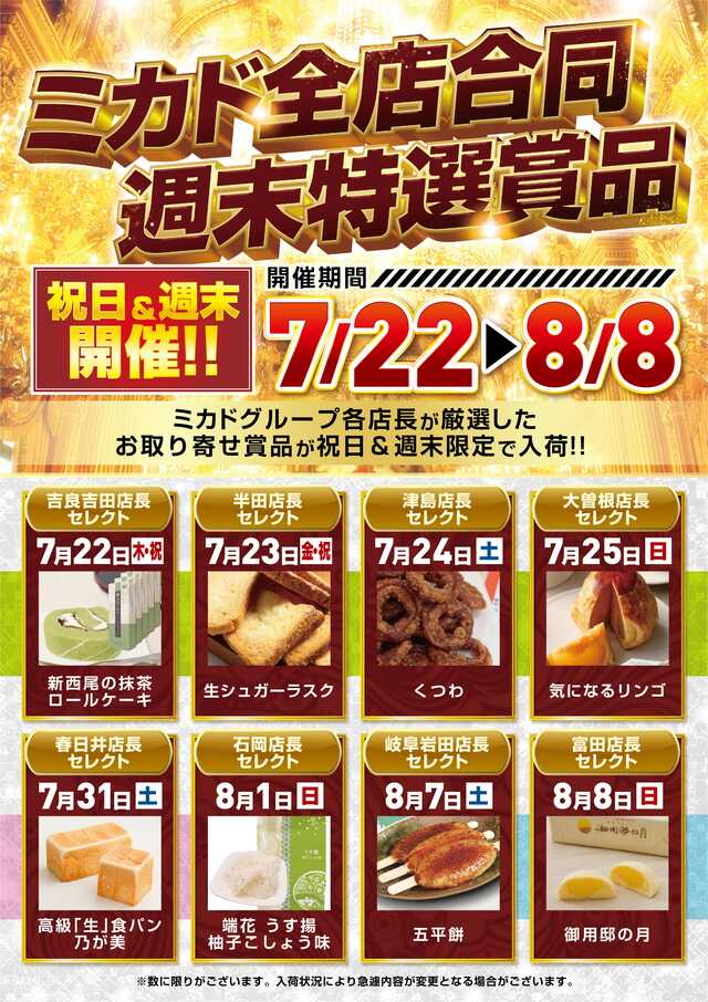 半田店合同企画【週末景品販売】週末はミカドへ!!