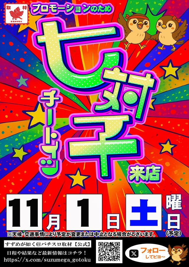 本日10月25日(土)【総付け景品配布】朝9時OPEN♪