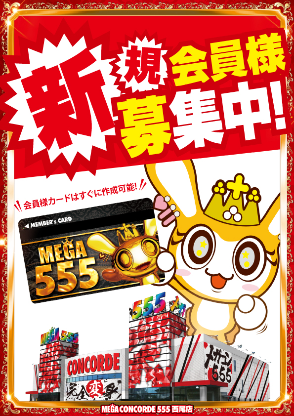 7月31日~メガコンコルド555西尾店 新規会員様募集開始