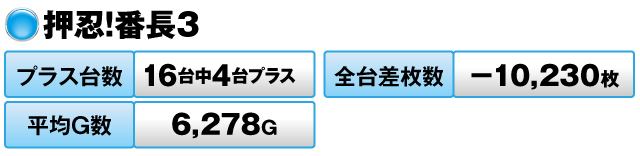 16台中4台がプラスだったものの、全台差枚数は-10,230枚とマイナスに甘んじてしまった。