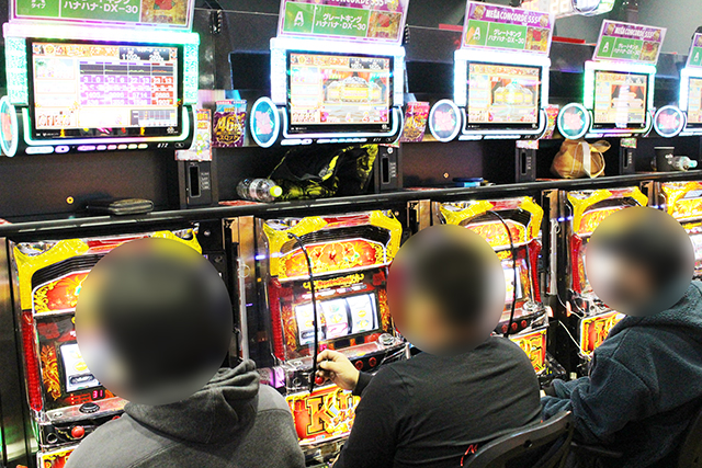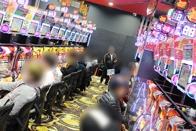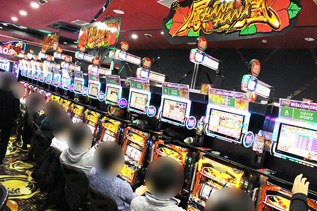 思い通りの結果につながったと思われる『ハナハナ鳳凰-30』、『グレートキングハナハナ-30』。この魅力的な台の固まりを求めて朝から並ぶプレイヤーは多い。今後もメガコンの名物として君臨するだろう。