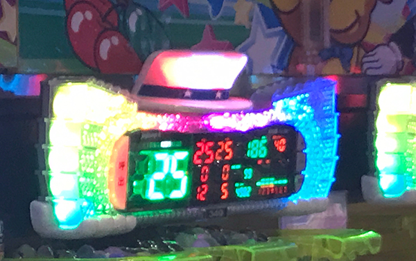 台の上に通常のものとは別に、横からでもみやすいデータカウンターが設置されている。