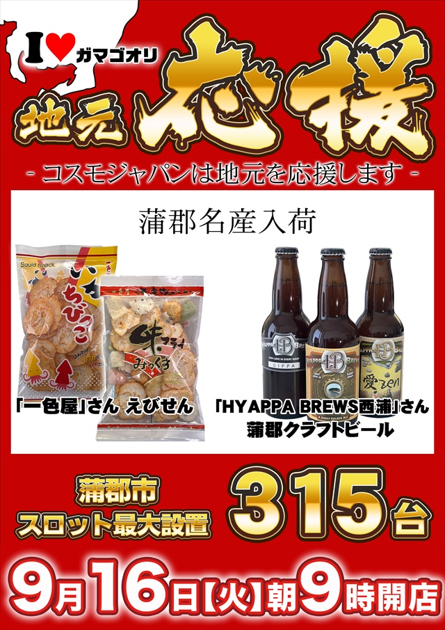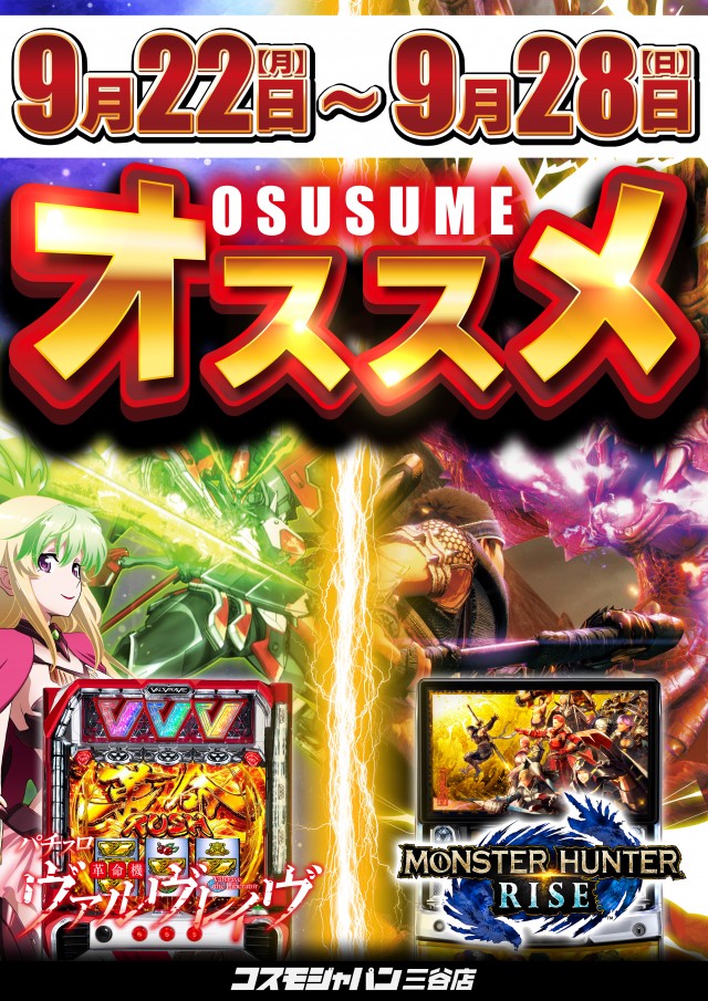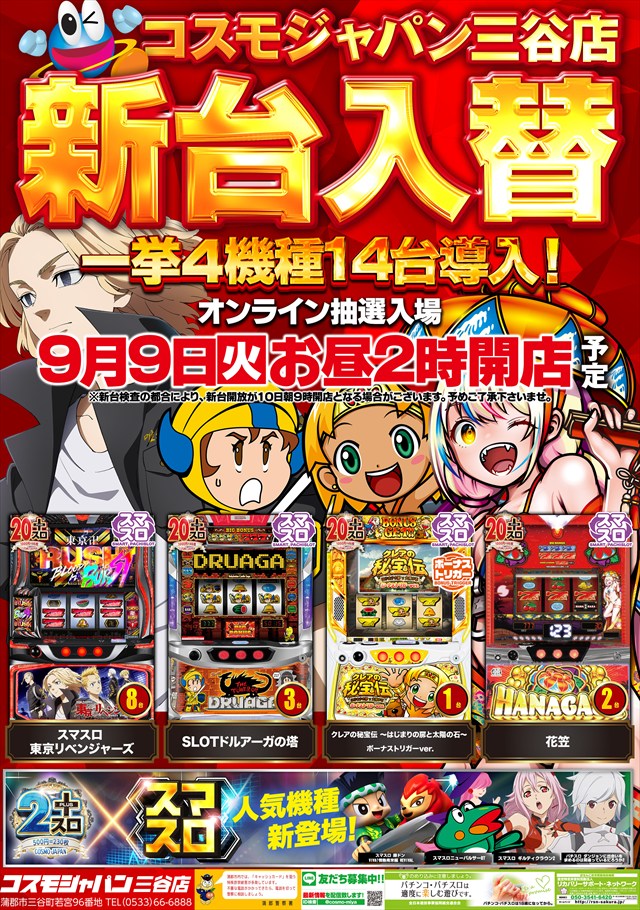 9月9日(火)昼2時開店=新台入替初日【オンライン抽選入場】