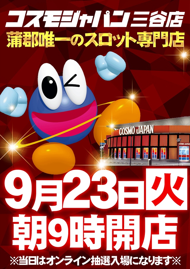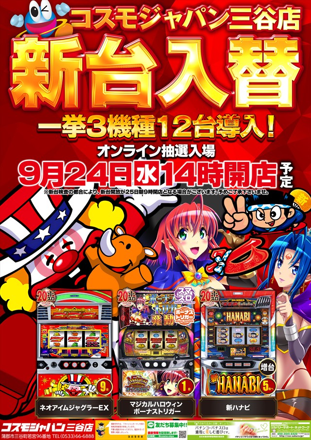 9月24日(水)昼2時開店=新台入替【オンライン抽選入場】