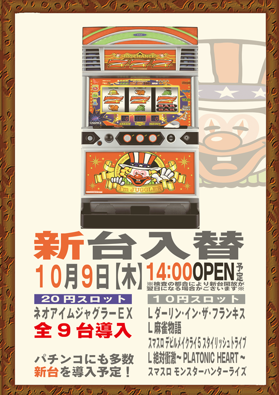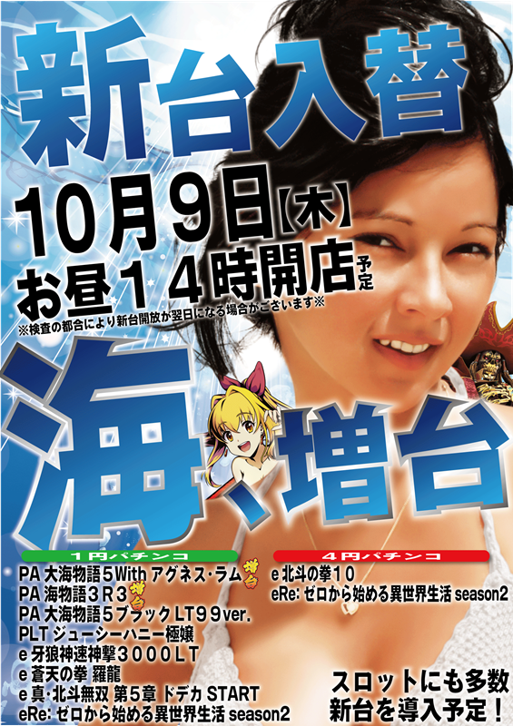 10月27日(土)チャンピオンタイキ蒲郡店 様こんにちは!!ぱちタウン編集部です(ノ>3<)ノ本日はチャンピオンタイキ蒲郡店 様にやってきました~☆こちらでは、パチンコ360台✿パチスロ107台☆合計467台☆をご用意いたしております♪本日の…
