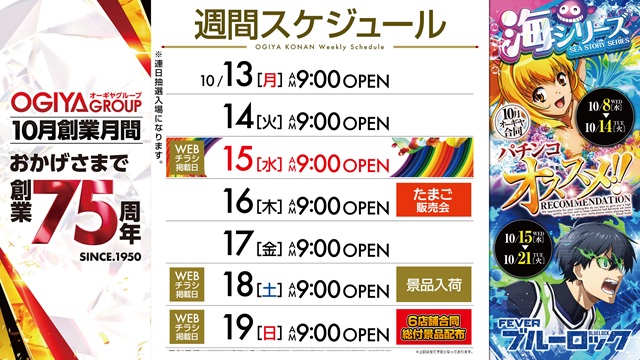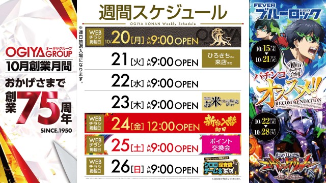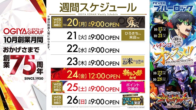 2025/10/20WEBチラシ掲載日!夜から打つならOGIYA!!                                ↑LINEのお友達登録はこちらから↑  ↓お気に入り登録はこちらから♪↓