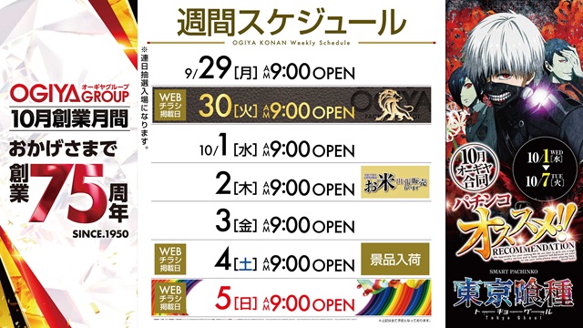 2025/09/30WEBチラシ掲載日!夜から打つならOGIYA!!                           ↑LINEのお友達登録はこちらから↑  ↓お気に入り登録はこちらから♪↓