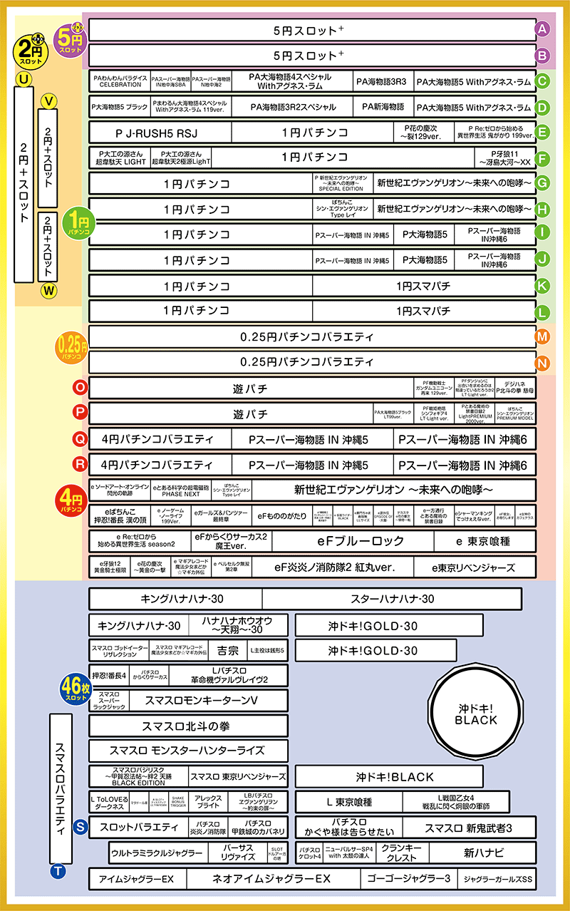 思わず応援したくなるような、働き盛りの「ガンバり台」を探す「ガンバレ30!!」。10月8日に足を運んだのは「ラッキー1番江南店」。80台以上の沖スロがあり、「チバリヨ-30」と3機種のハナハナシリーズが設置されている。