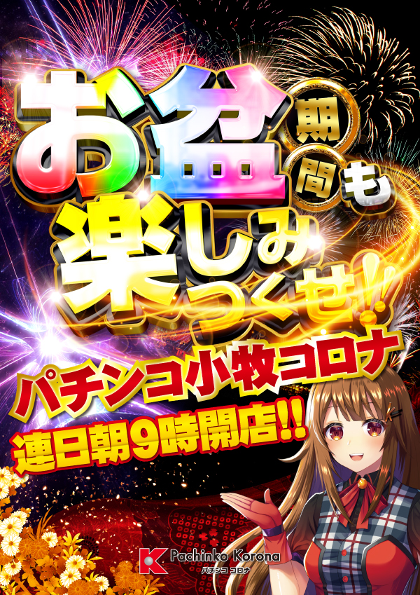 お盆期間も小牧コロナで楽しもう 連日 朝9時開店!
