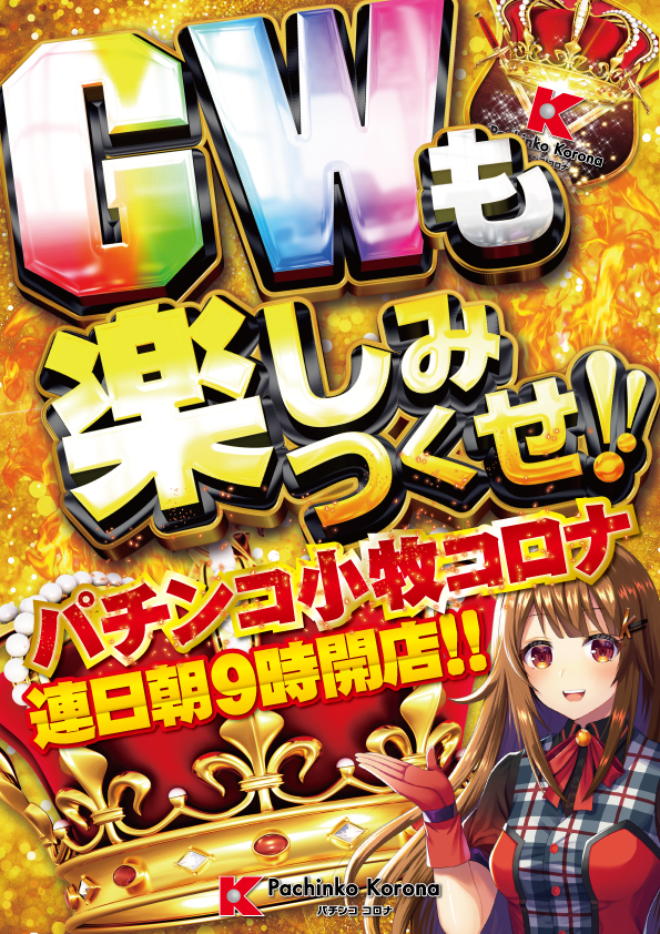 5月5日(日)パチンココロナ愛知全店一斉朝9時開店!