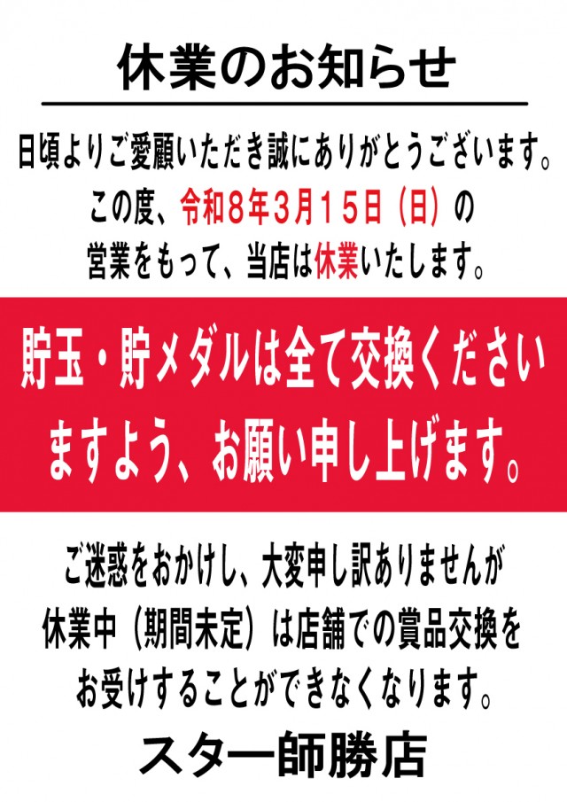 スター師勝店のお知らせ一覧