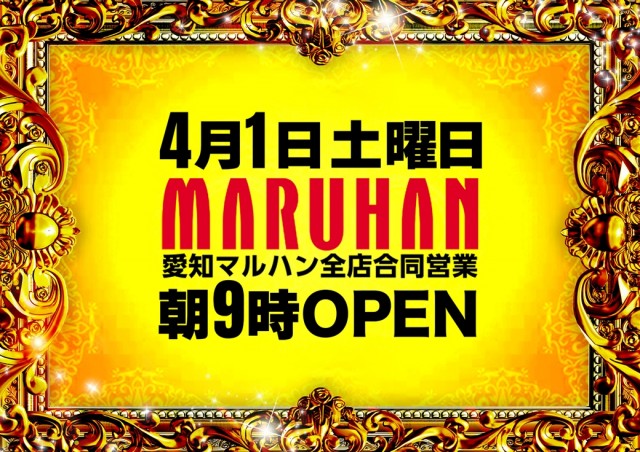 4月1日(土)愛知マルハン全店 朝9時OPEN