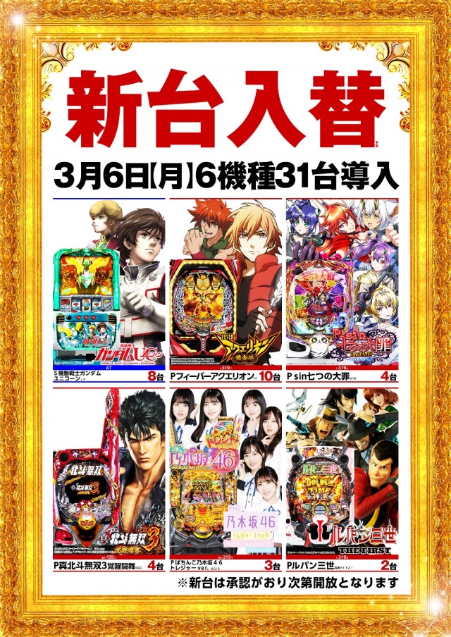 ★ 新台入替初日 ★ 3月6日(月) 朝9時OPEN