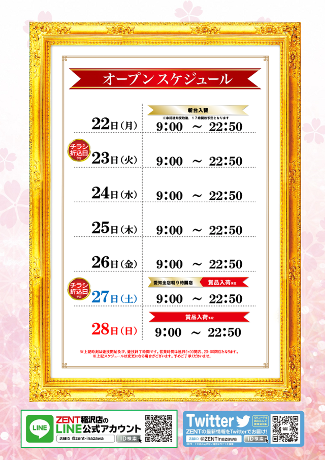 11月16日【月】新台入替16機種43台導入予定★朝9時開店