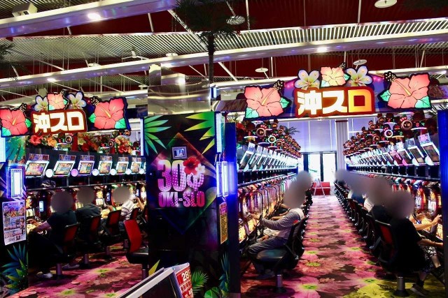 さらに『ハナハナホウオウ~天翔~-30』の人気に続いて、『チバリヨ-30』にも好調台を多数確認。5台並びでプラス台の箇所もあり、沖スロ3機種160台を設置する同店で目立つ狙い目となっていた。