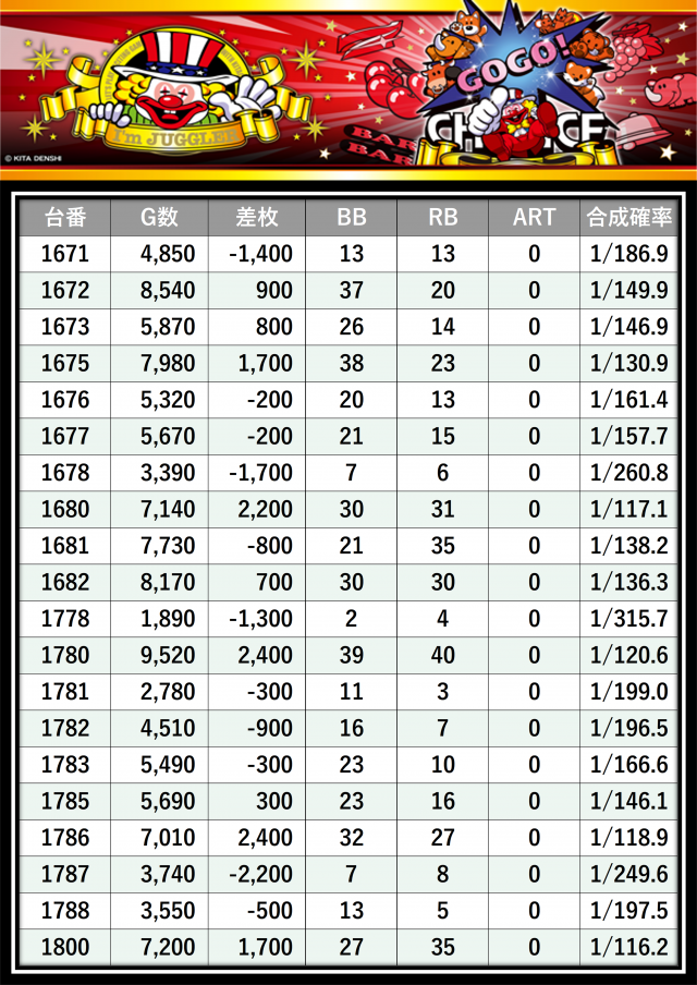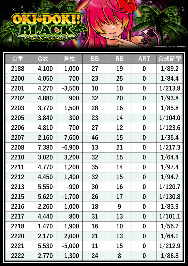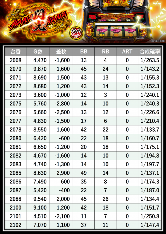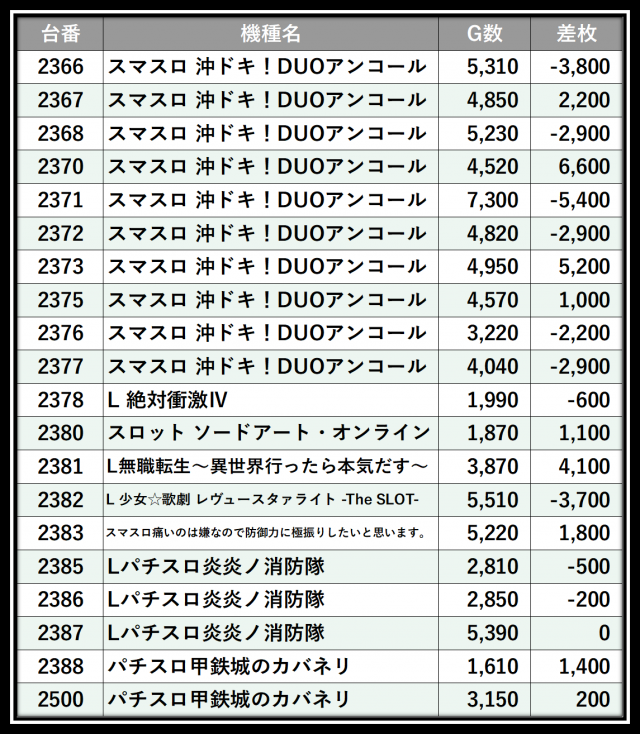 その結果の中から、ぱちタウンが注目すべきポイントを厳選してユーザーにお届け!プレイヤーが楽しんだ一日を下記データにて振り返ってみて欲しい。